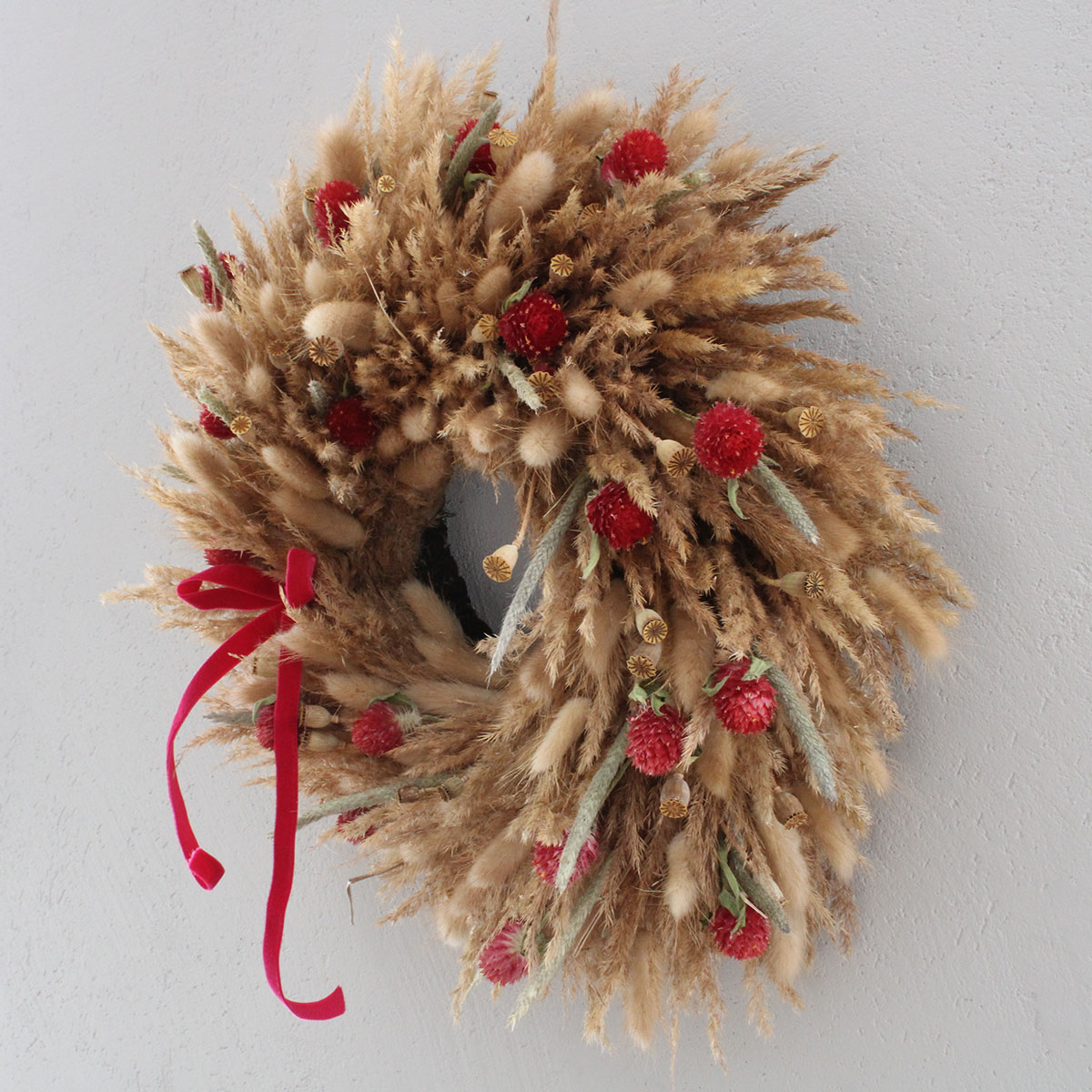 Aby wianek zachował swój wygląd przez długi czas, wystarczy chronić go przed wilgocią oraz intensywnym światłem słonecznym. Najlepiej eksponować go pod zadaszeniem – dzięki temu wianek pozostanie piękny przez wiele miesięcy.